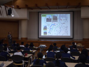 4年 総合的な学習の時間「大門のすてき」 投稿日時: 2025年11月20日 投稿者: 4年 11月19日(水)にビオトープアドバイザーの表先生に来ていただき、大門に流れる川やそこに生息する魚についてくわしく教えていただきました。 子供たちは、大門にはトミヨやあしつき等天然記念物に指定されている動植物が多いことに驚いていました。さらにその水資源が何年も続いていることに大門のすばらしさを感じていました。 これから学習のまとめに入っていきます。どんなまとめになっていくか楽しみです。