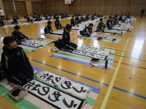 1/9 はじめての書初大会 投稿日時: 2026年1月13日 投稿者: 3年 1月9日(金)、3年生の子供たちはだるま筆を使ってはじめての書初大会を行いました。 今年の文字は「うめの花」です。冬休みに練習してきた成果を存分に発揮して取り組んでいました。