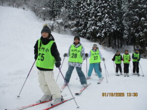 最初は、待ちに待ったスキー学習にワクワクしている児童や久しぶりのスキーに少し不安げな表情を浮かべる児童、様々でしたが、活動が始まるとどの児童もインストラクターの先生の話をしっかりと聞き、一生懸命に取り組んでいました。