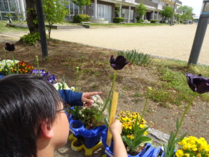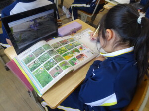 3年生 新しい教科「理科」 投稿日時: 2026年4月23日 投稿者: 3年 理科の学習が始まりました。新しい教科に子供たちはとてもワクワクしています。 先日、外に出て自然の生き物を観察しました。子供たちは、ものさしを使って植物の高さを測ったり、タブレットを用いて生き物の写真を撮ったりしました。 身の回りの不思議を基に、「どうして?」「もっと知りたい!」という子供たちの気持ちを刺激しながら理科の学習を進めていきたいと思います。