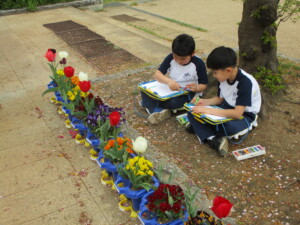 2年生 図工 春探しをしました! 投稿日時: 2026年4月23日 投稿者: 2年 図画工作科「きせつをかんじて」の授業で、春探しをしました! ビオトープや、花壇、グラウンドにある春を見つけて、絵を描きました。 「桜の花びらがピンク色でかわいい!」「たんぽぽは花びらがたくさんあるよ!」と、楽しそうにたくさん話してくれました。 好きなものを見つけて、自由にのびのびと絵を描くことができました! 春を感じる素敵な時間を過ごすことができました。