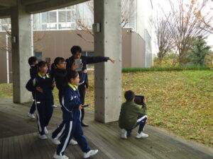 2年生は、町探検の最終回として、「土」「水」「歴史」の3コースに分かれ、普段歩いて行くには難しい場所へ、バスで自分たちの町の「すてき」を見つけに行きました。